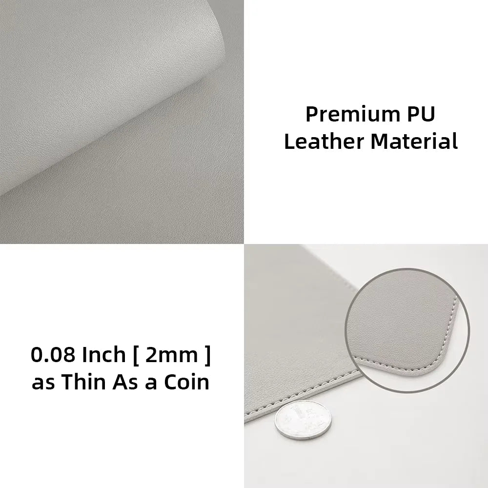 Protect your workspace with this large-size office desk protector mat made from durable PU leather. Its waterproof surface guards against spills, while the non-slip backing ensures it stays firmly in place during use. Designed to accommodate both keyboard and mouse, this mat provides a smooth, comfortable area for gaming or office tasks, enhancing precision and protecting your desk from scratches and wear.